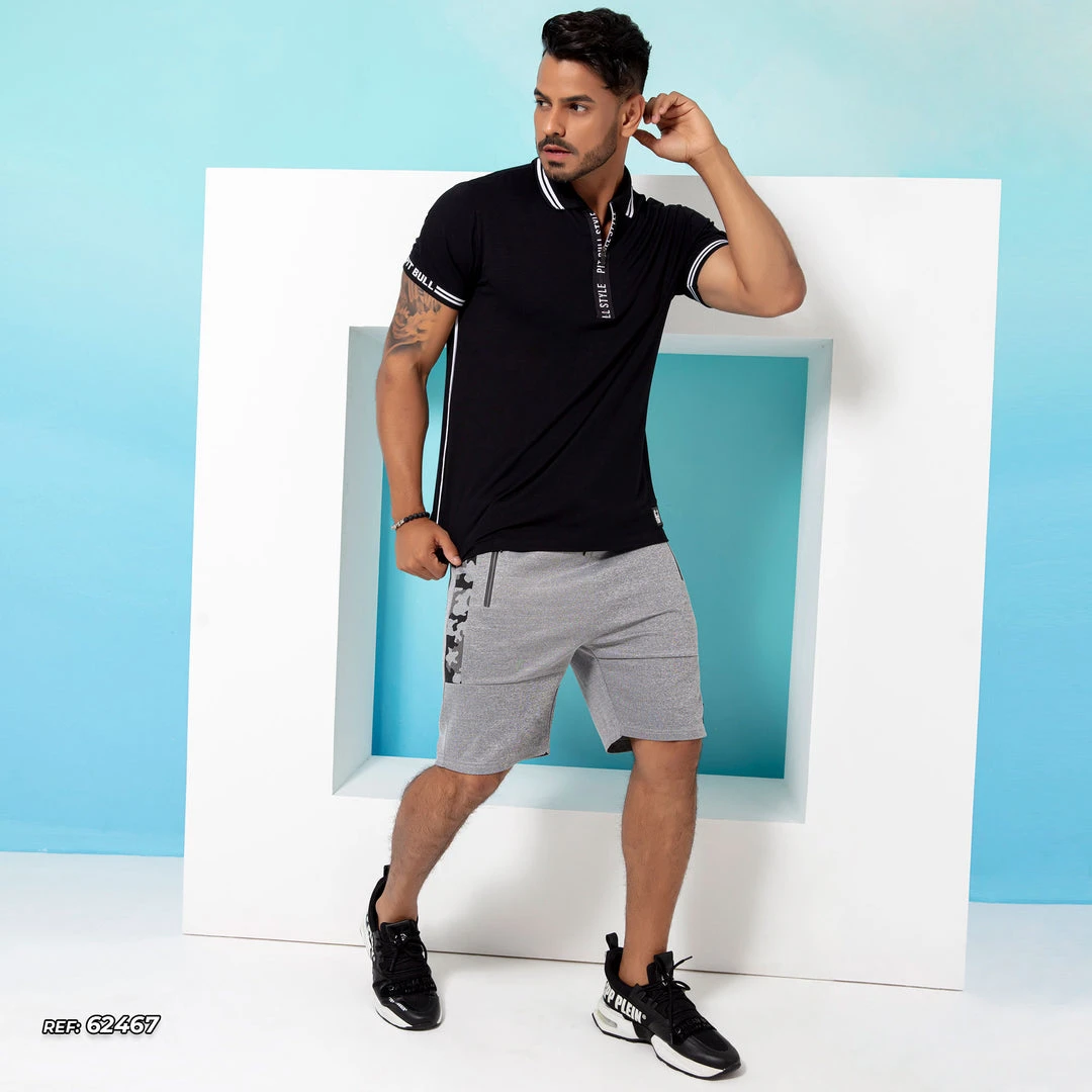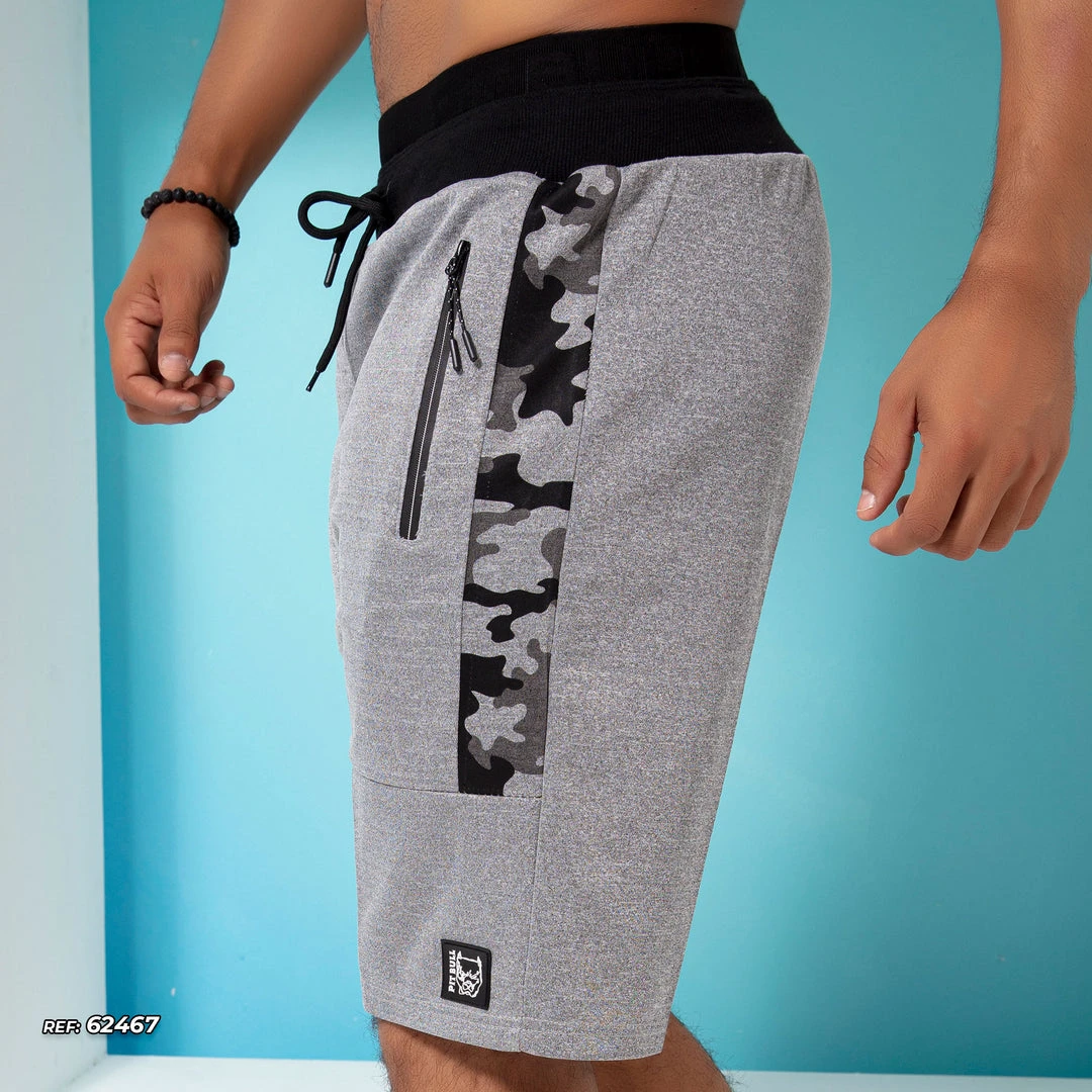 Details: Men’s Bermuda shorts with super-soft fabric that brings more comfort on the hottest days. Front pocket with zipper, details in camouflage print and drawstring for tying in a black elasticated waistband.