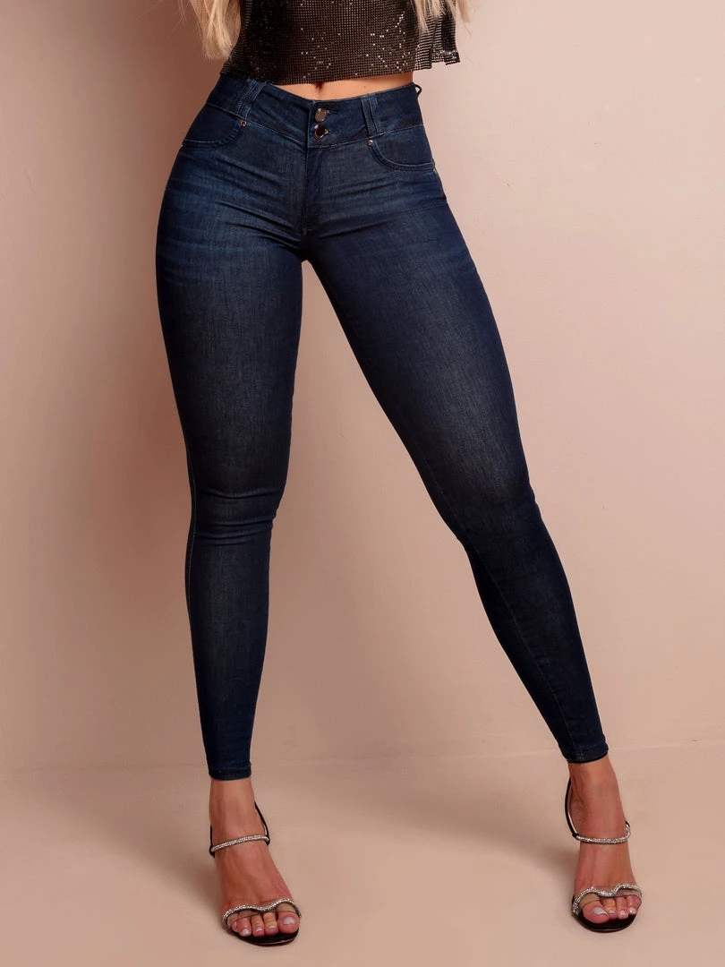 Blue jeans are the key piece of your wardrobe to compose from day-to-day in daring looks! With a technological wash that does not fade, the model in navy blue has a butt lift and light details in destroyed to ensure the modernity of the basic piece!