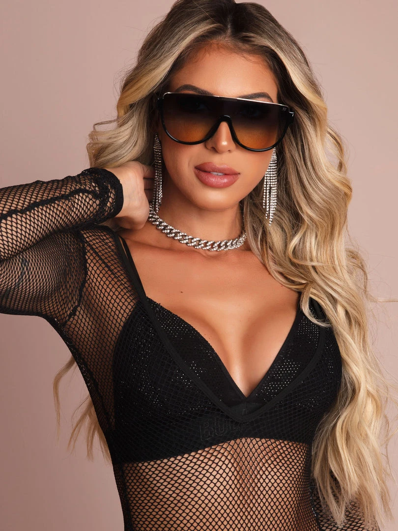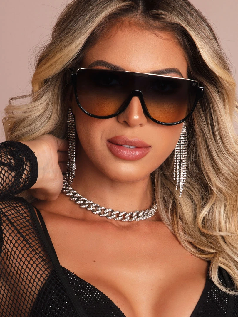 The sunglasses that will provide even more elegance for your look! The mask model has a gradient lens with a brownish background when in contrast with the face and UV400 technology that guarantees protection against UVA and UVB rays.