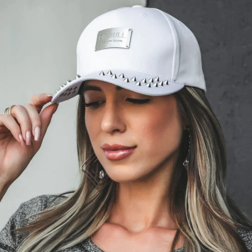 Personalized cap with thumbtacks and personalized silver plate with logomania. Perfect for you to compose your look with much more style!