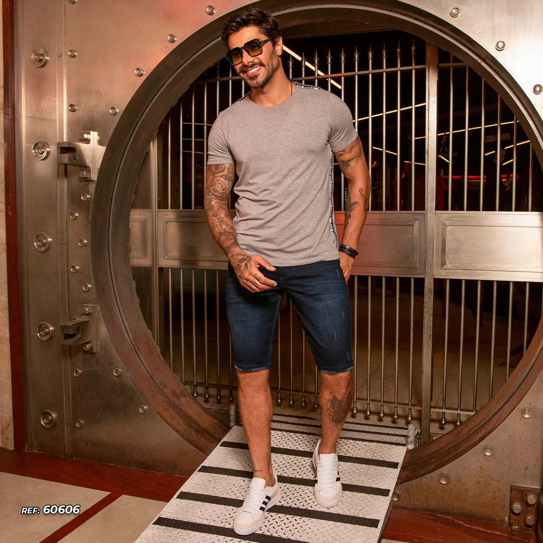 Details: shorts with dark technological wash that prevents fading. The piece has destroyed details and a custom elastic waistband with logomania. Button and custom notices.