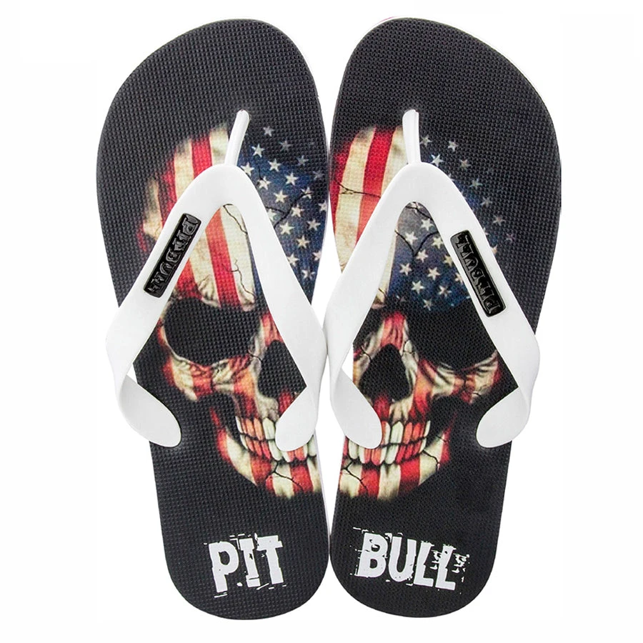 Detail: men’s slipper with an exclusive skull print with US flag and white logomania. The thick strap is anatomical, which brings more comfort to the garment, and it has logomania details. Made of resistant rubber, the slipper has great durability.