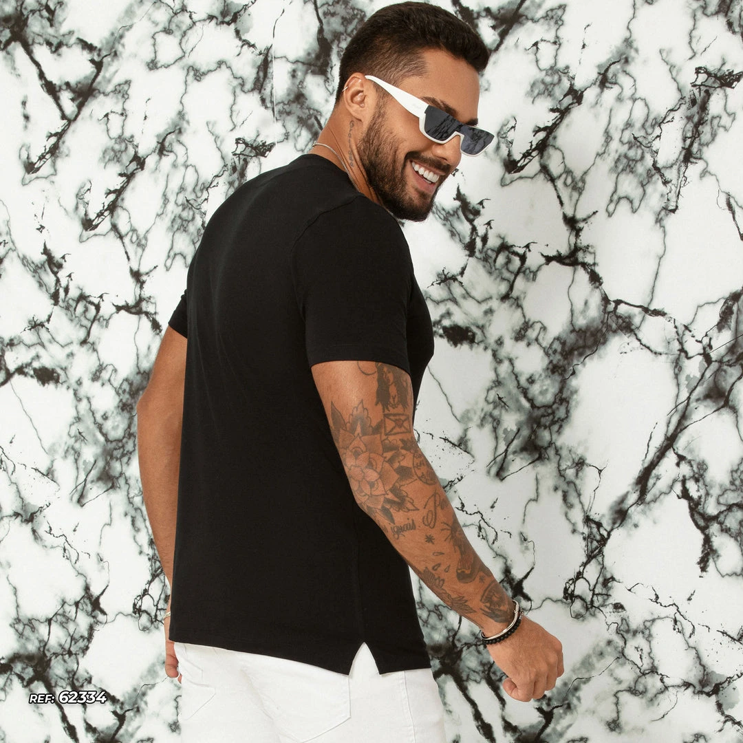 Details: Men’s black t-shirt made of super soft fabric that promotes a light touch on the skin. The piece has a logomania print in silk and a straight modeling that follows the body.
