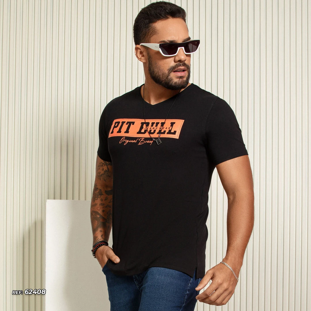 The men’s color block t-shirt with v-neck and logomania is practical and super easy to match with all looks. In addition, it gives you a comfort and total style that only Pit Bull has. Carry the essence of the brand with you and dress in power.