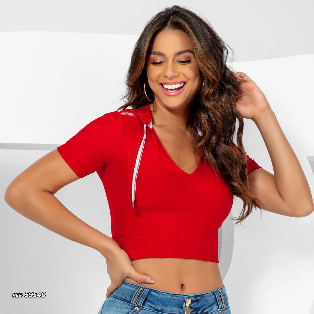 Unique style and with that practicality you need in your days, the sports cropped with hood will be the key piece in your closet, providing extreme comfort with the soft touch of the spandex fabric. Stripped model, gives that modern touch to your look!