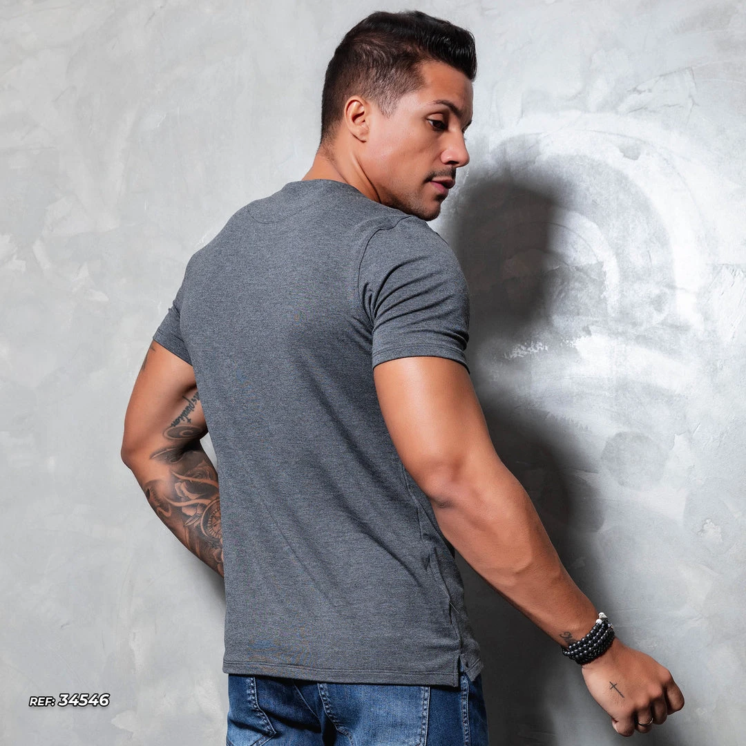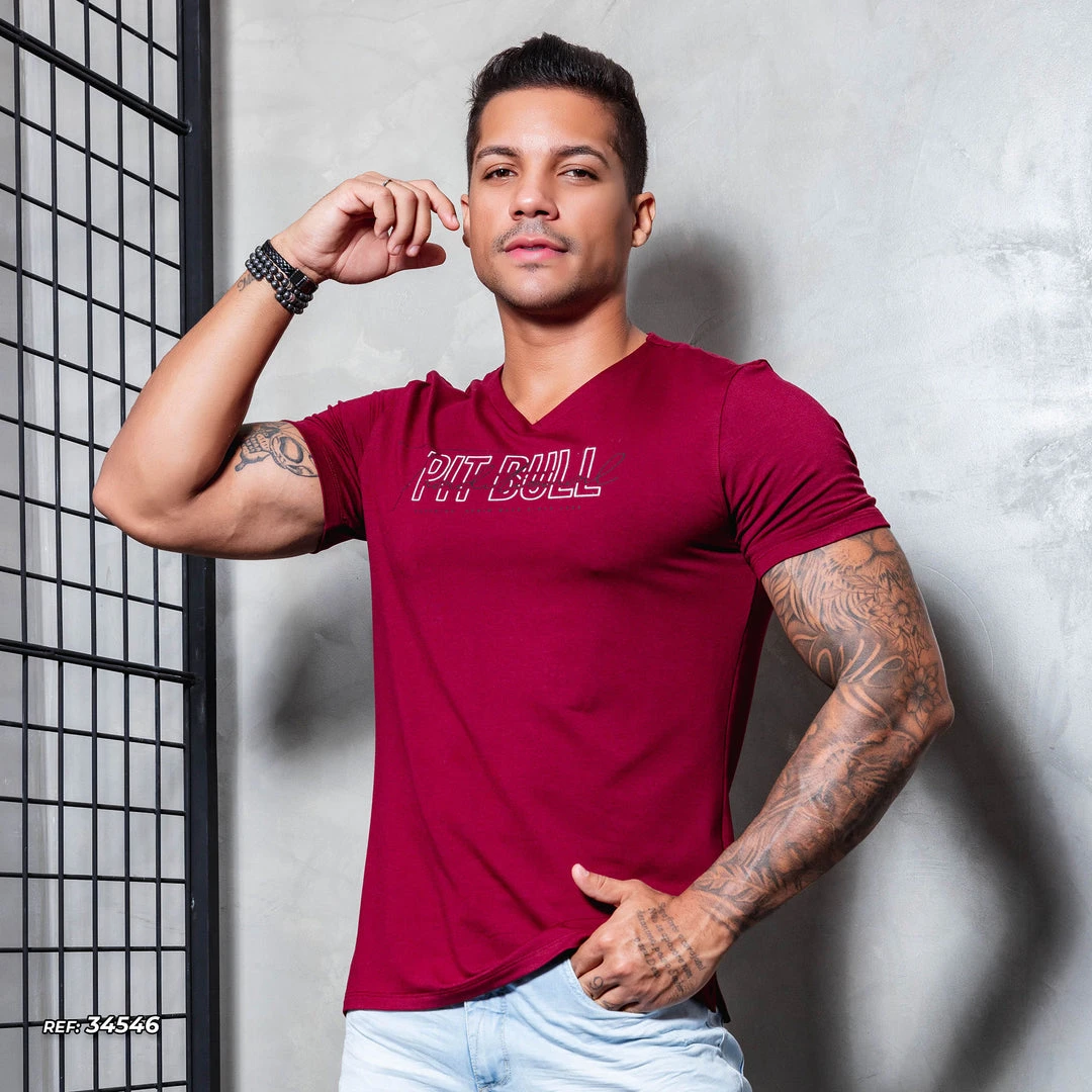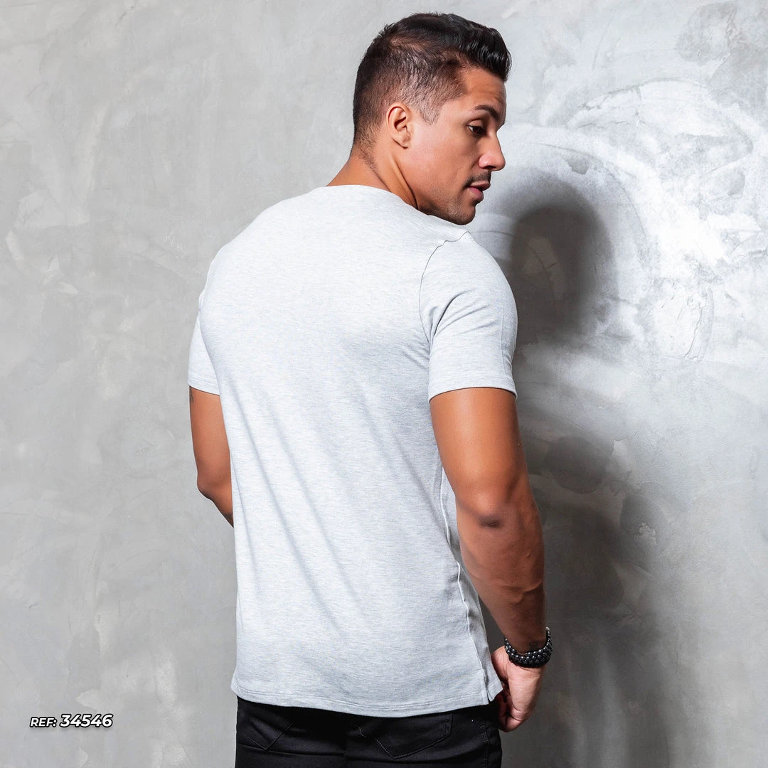 Details: White V-neck t-shirt, short sleeve. Produced in high standard knitwear, with plenty of elastane, soft touch and comfort. Print located with differentiated relief silk.