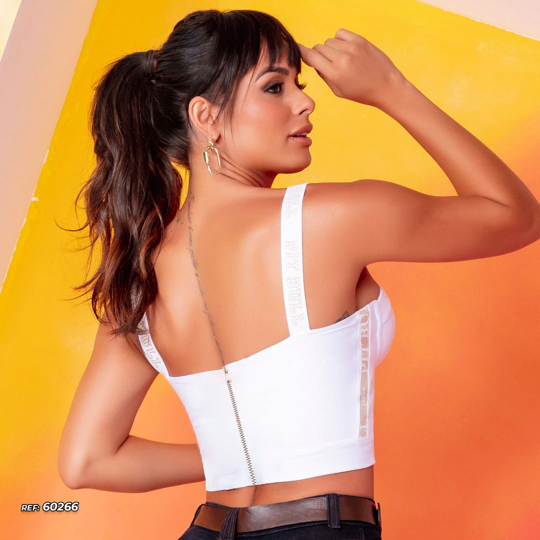Specially developed to enhance your beauty, sensuality and feminine power, the sexy cropped with logomania is produced in super soft lace, to make you look beautiful and comfortable! It has personalized straps with metallic threads and a half cup cup that makes the piece very modern and enhances the neck even more, giving an air of sensuality to the look.