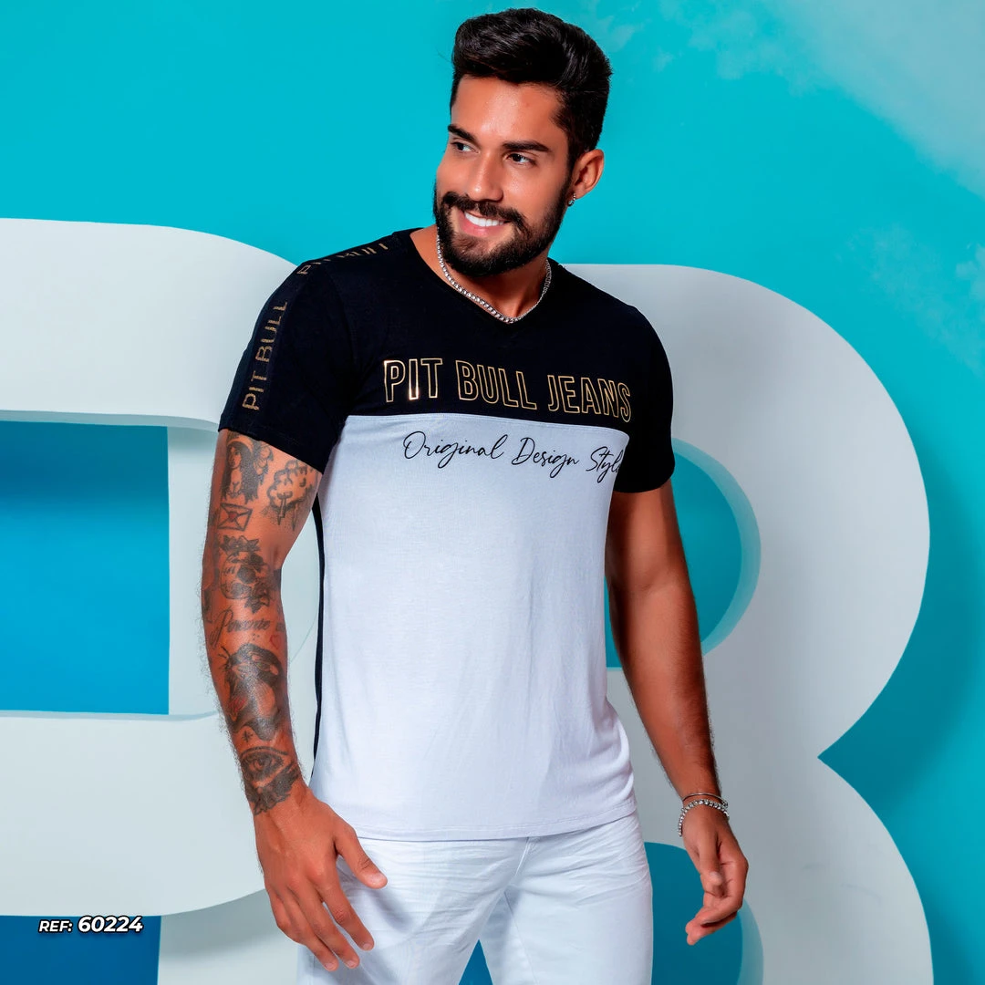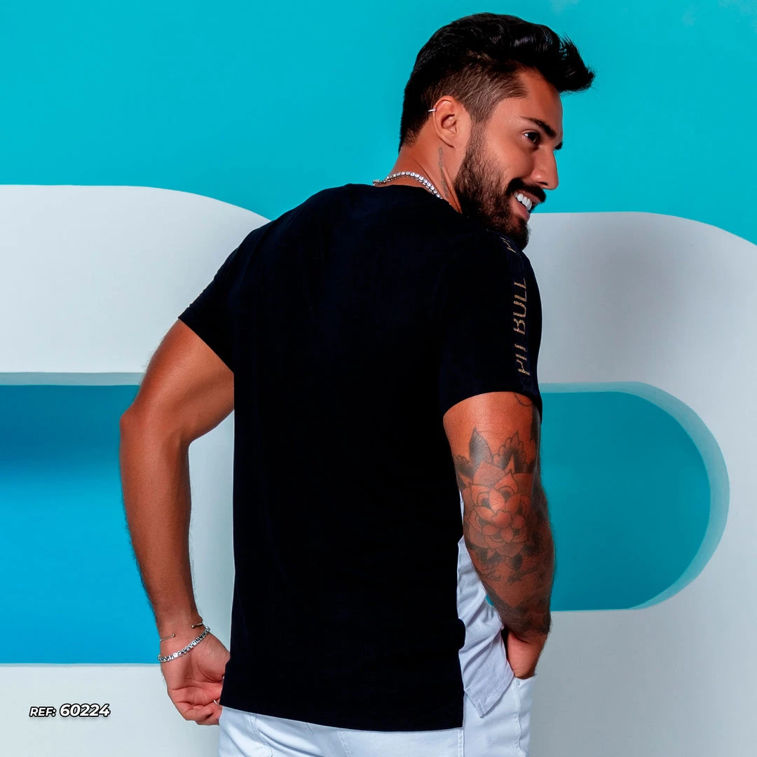 For the modern man who enjoys abusing style, the men’s black and white v-neck t-shirt is extremely versatile and democratic, to fit all the modern standards of men’s fashion, bringing as characteristics the enhancement of comfort and practicality. In addition, it has a personalized silk detail with a golden logo that elevates the piece from a simple casual, to a modern t-shirt with an urban touch.