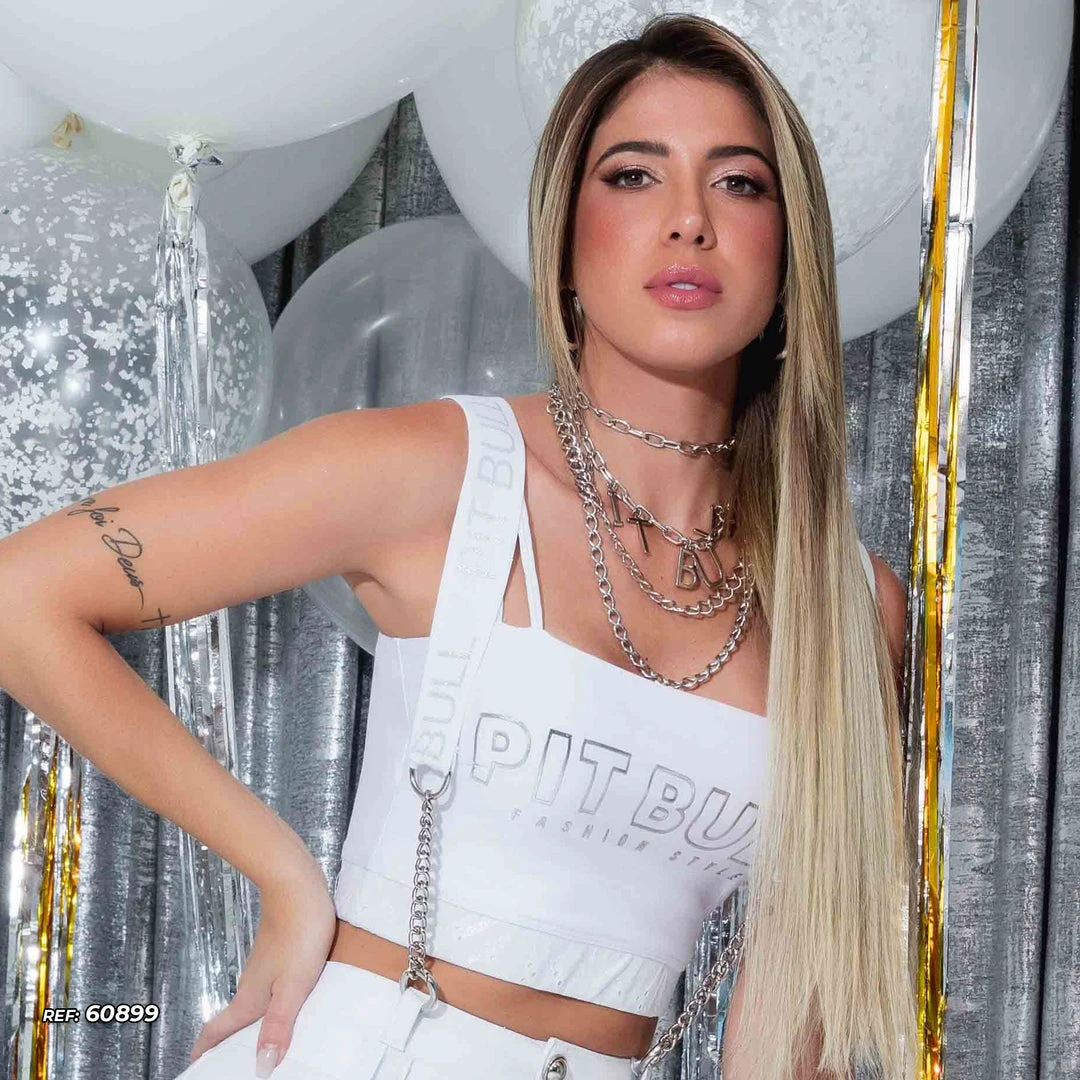 Details: White cropped in light and soft mesh, which promotes much more comfort, it is rich in elastane with a logo made in high relief silver silk. Presence of double strap, removable cup for support and laise mesh with hollow embroidery on the waistband of the blouse, which gives more delicacy and femininity to the piece.