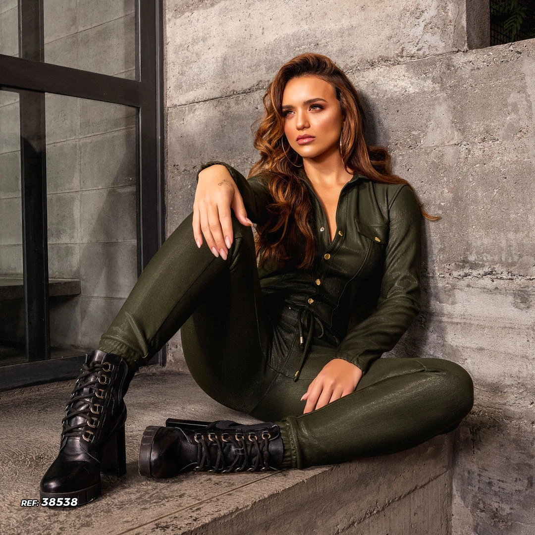 Details: elastic ankle cuffs, waistband, sexy fit, custom gilded metal trims on the garment, mesh with light shine and removable bulge