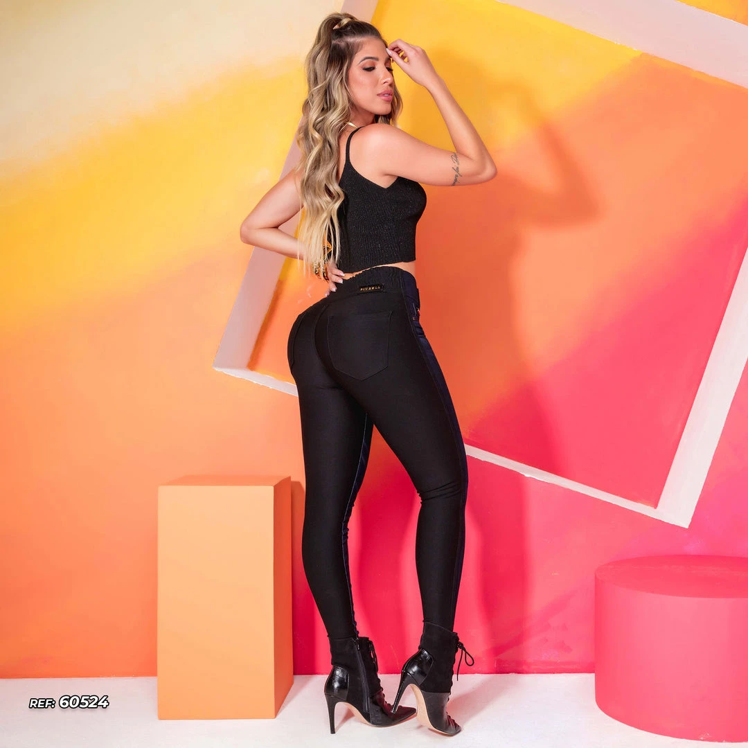 Details: bicolor pants with magic waistband that shapes and thins the waist, reducing measurements. The piece has technological laser washing details that prevent fading and custom trims with logomania that bring the style that only Pit Bull Jean has.