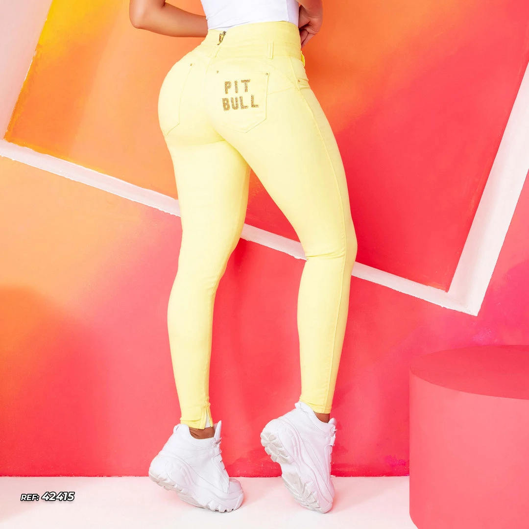 The perfect-waisted yellow shaping jeans add style and a subtle touch of sensuality to the look, despite what it might look like for its color, it is not limited to striking and extravagant productions! With her skinny shaping and exclusive Pit Bull Jeans styling waistband, she enhances curves and visibly decreases waist circumference while her butt swells promote the unique push-up effect, leaving your body much prettier and contoured.